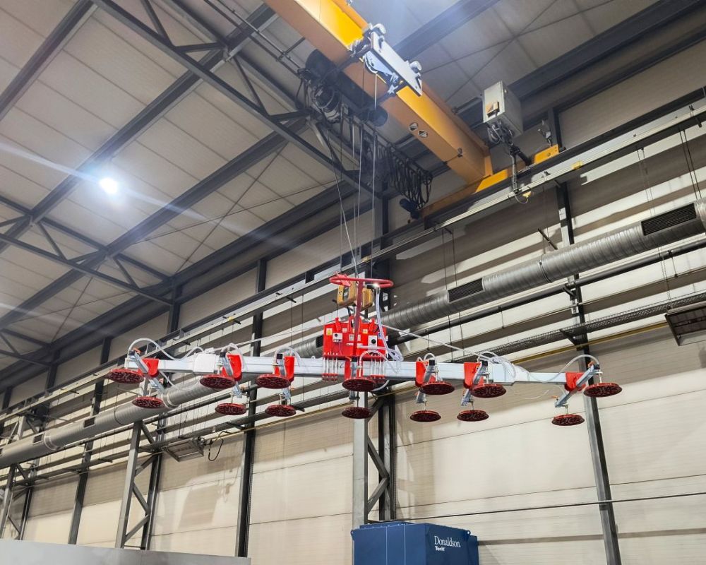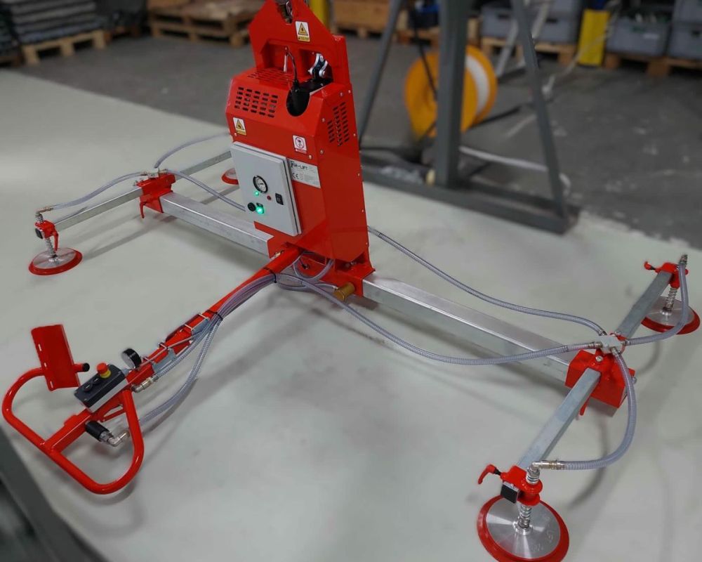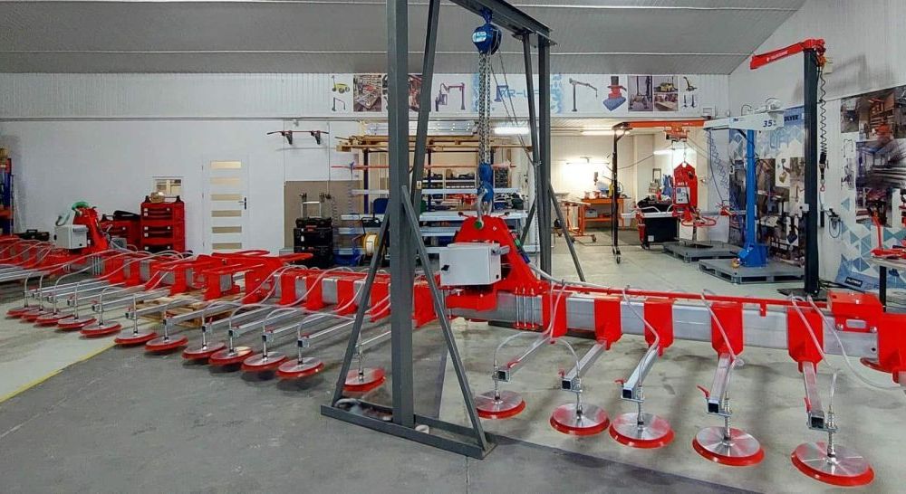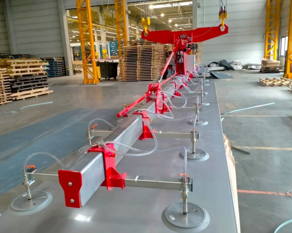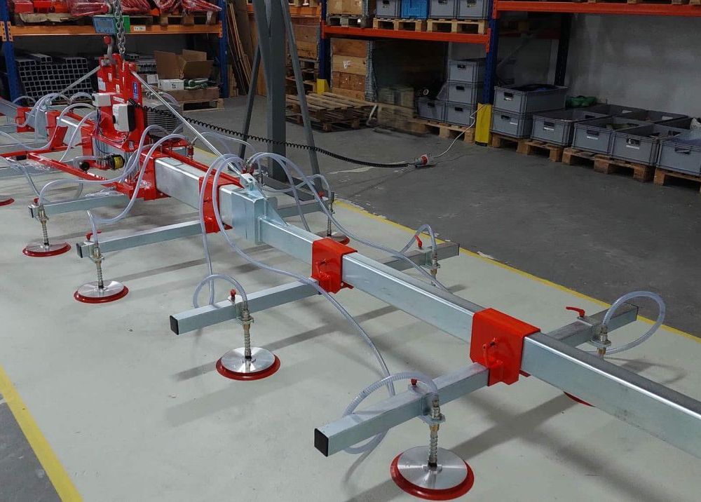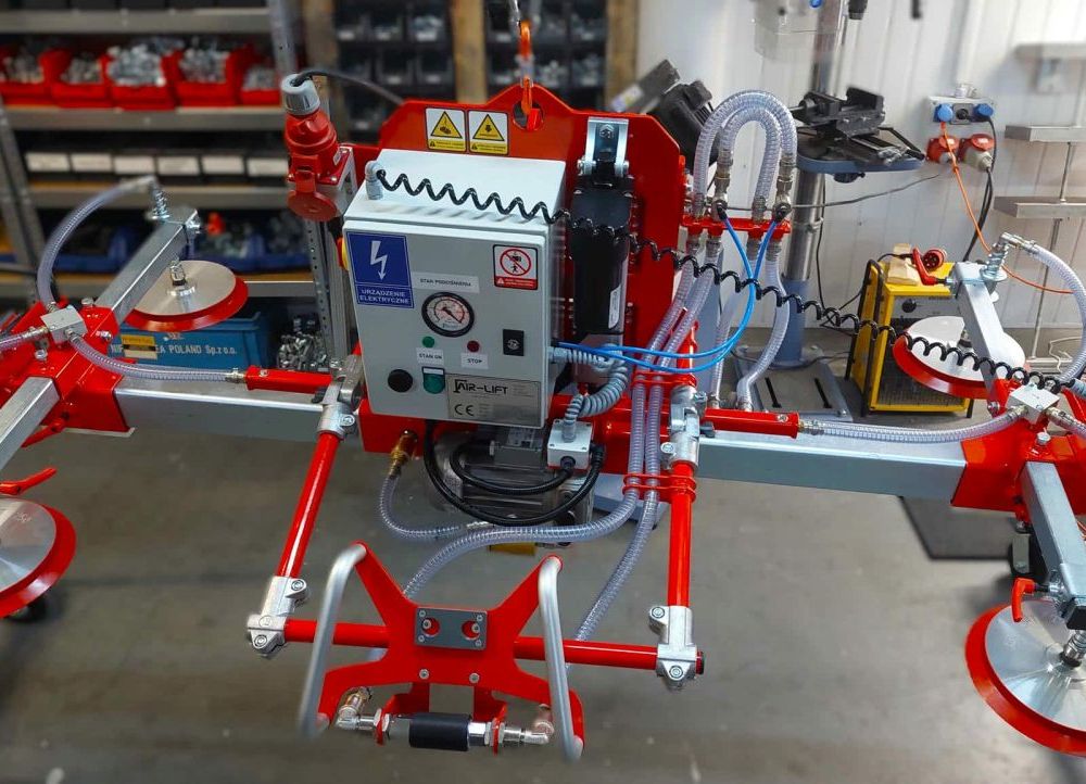 One of the most important areas of Air-Lift’s activity is the production of battery-powered pneumatic traverses, which do not require a constant connection to a power source. This allows them to be used with any lifting device — from cranes to workshop hoists. The battery capacity ensures uninterrupted operation for up to 8 hours, and charging can be done anywhere — this solution significantly increases device mobility and reduces setup time.Air-Lift autonomous vacuum suspensions are used in many industries. They are ideal for transporting magnetic and non-magnetic sheets, laminated panels, glass, windows, or plastic components. Thanks to their mobility and versatility, they improve daily material logistics in production facilities. Our design and production of pneumatic traversesalso includes adaptation to limited spaces, which provides a clear advantage over traditional transport systems.