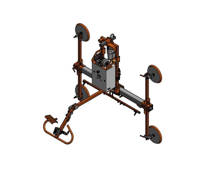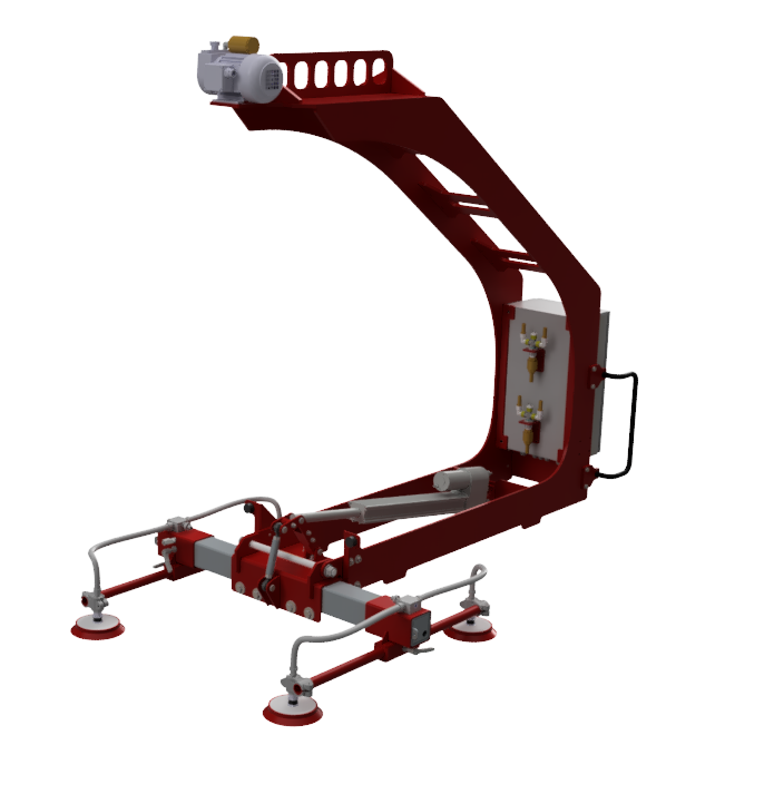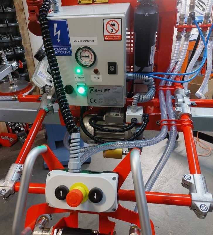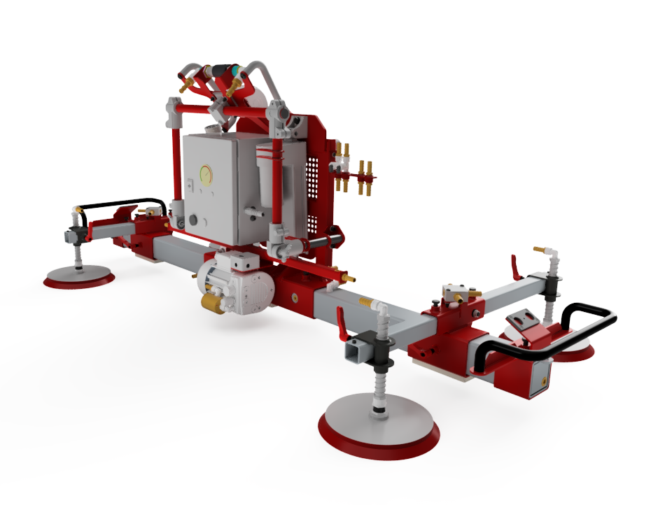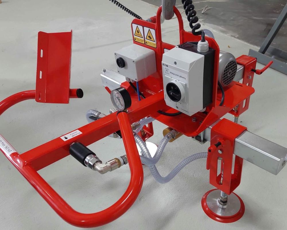 Another branch of our activities is the production of electrically powered pneumatic traverses — equipment designed to handle loads of up to 20,000 kg. These devices can be powered by electricity or compressed air, enabling continuous operation. The vacuum pump compensates for any air leaks, allowing safe handling of porous and irregular products.Air-Lift powered traverses feature a modular design, allowing them to be equipped with additional functions — such as rotation or tilt of the product in any axis in a range of 0–180°, driven electrically or pneumatically. This enables adaptation of the device to specific technological processes, increasing efficiency and safety when handling large loads. Additionally, each model can be customized to unusual load dimensions.