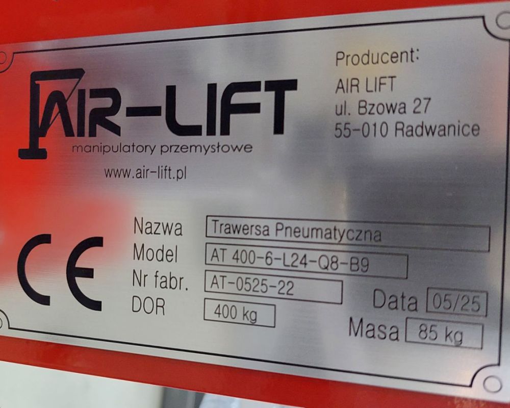Air-Lift traverse design promotes ease of use. After activating the vacuum generation module, the operator positions the device on the load and engages the slide valve. A built-in audible indicator signals when the proper vacuum level is reached, enabling safe lifting of the load. The use of robust, certified components and control systems ensures stable operation and maximum safety under all conditions.Powered Pneumatic Traverses – Strength and Versatility